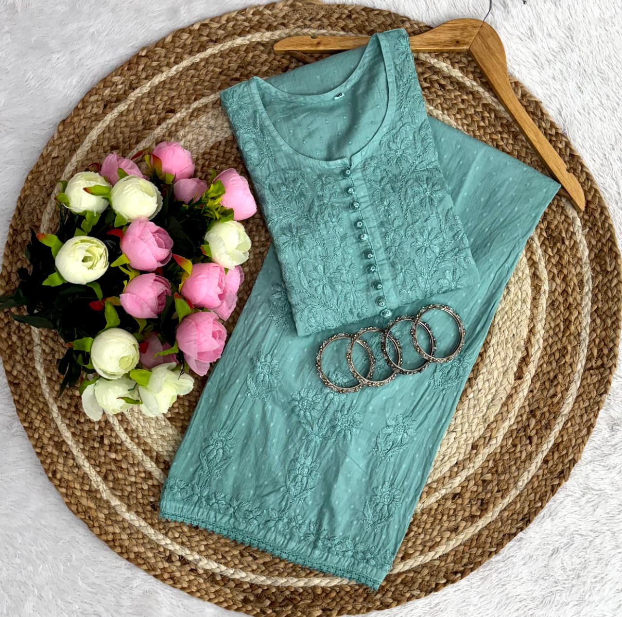 ✔ Work / Detailing: Lucknowi Chikankari Ghas Patti Handwork with Lace Design